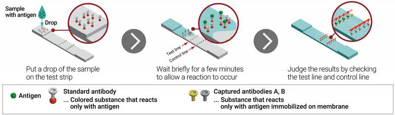 Xét nghiệm miễn dịch sắc ký là kỹ thuật sử dụng các chất màu để đánh dấu kháng nguyên hoặc kháng thể. Khi có sự kết hợp giữa kháng nguyên và kháng thể, sẽ xảy ra sự thay đổi màu sắc của dung dịch, từ đó cho phép đo lường lượng kháng nguyên hoặc kháng thể trong mẫu.