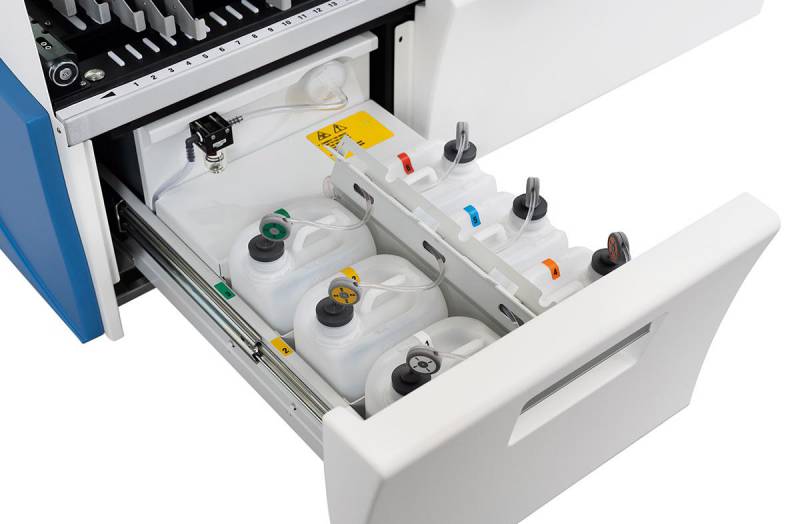- Bình chứa rửa: 6 bình chứa 2 lít. 6 bình chứa 2.0 L. 5 dung dịch đệm rửa + 1 nước cất hoặc dung dịch đệm rửa.